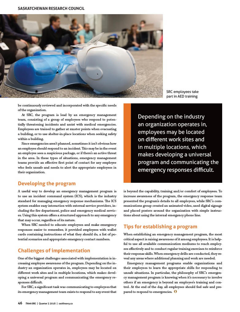 At SRC, the program is lead by an emergency management