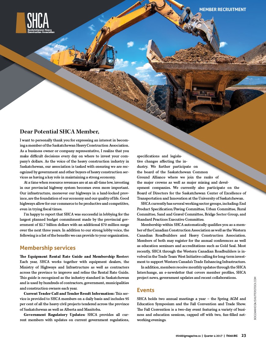 recently, SHCA through the Western Canadian Roadbuilders is in-volved