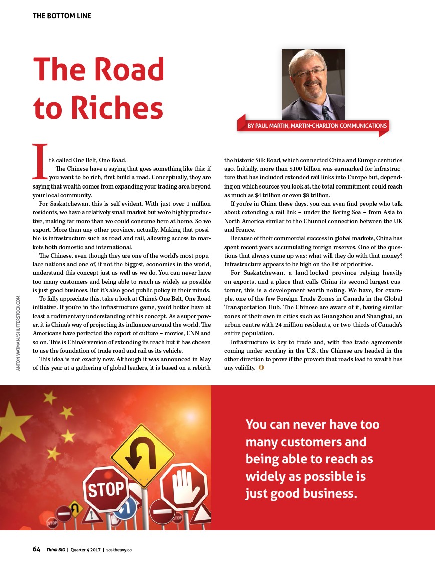 ANTON WATMAN / SHUTTERSTOCK.COM 64 Think BIG | Quarter 4 2017 | saskheavy.ca